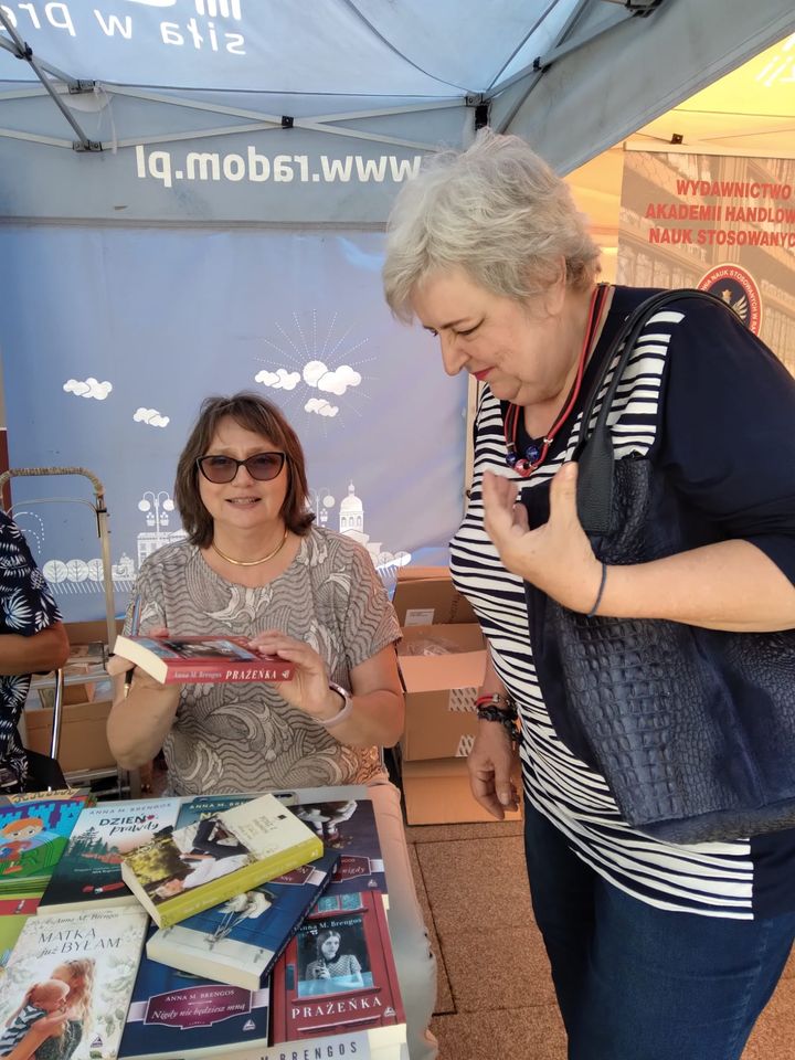 Wreszcie miałam też szansę spotkać się na żywo z Panią Redaktor Haliną Bogusz, która redaguje moje powieści. Pozwólcie, że Wam przedstawię: to ta Pani tuląca książkę na zdjęciu. Dla nas obu było to niesamowite wydarzenie, bo współpracując tyle lat, słyszałyśmy się jedynie przez telefon. Dopiero dziś zobaczyłyśmy się na żywo.