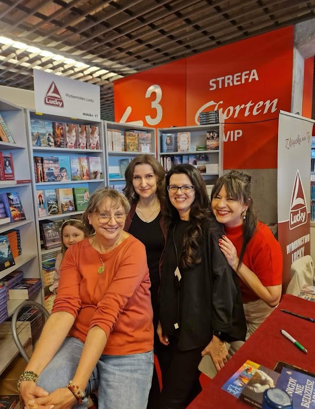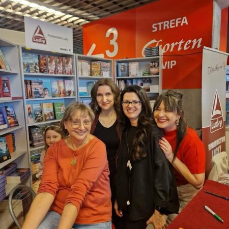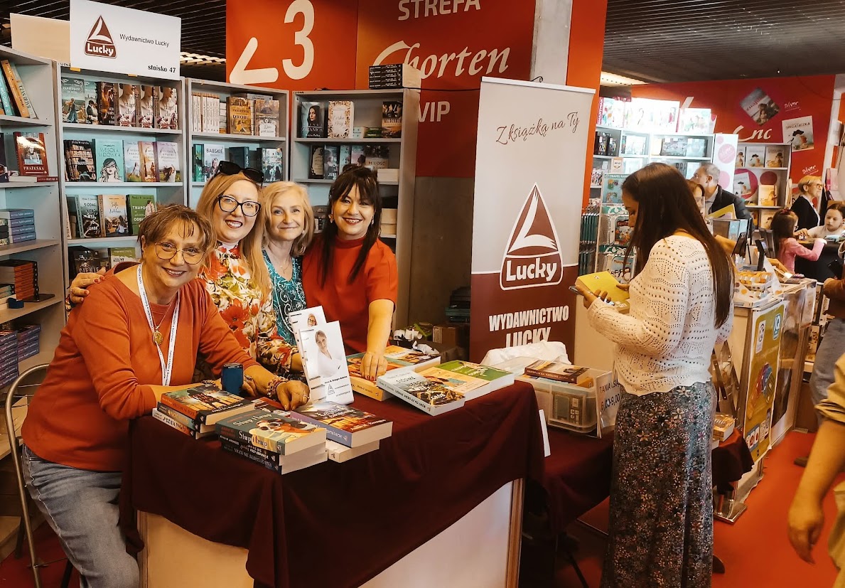 My, to znaczy silna ekipa wydawnictwa LUCKY. Tym razem Monika Chodorowska, Monika B. Janowska, Anna Siedlecka, Urszula Gajdowska i Joanna Kruszewska. Jak zwykle żarty, przekomarzania, chichy i śmichy, a przede wszystkim książki, książki, książki……..