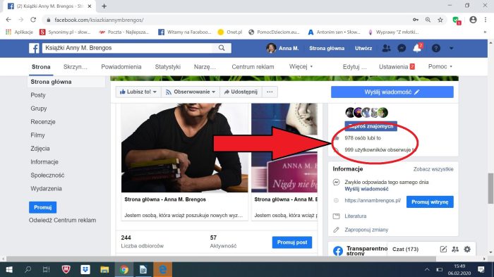 … tak mało potrzeba…. do 1000 obserwujących stronę Książki Anny M. Brengos na Facebooku.