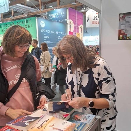 Wydawnictwo Lucky tym razem zaprosiło na stoisko również Monikę B. Janowską, Weronikę Umińską, Monikę Chodorowską, Weronikę Tomalę, Izabelę M. Krasińską, Kingę Tatkowską, Annę Witkowską-Witalę, Joanne Tekieli i Jacka Getnera. W kulminacyjnym momencie było nas 6, ku radości czytelników, którzy mieli problem, od kogo zacząć rozmowę.