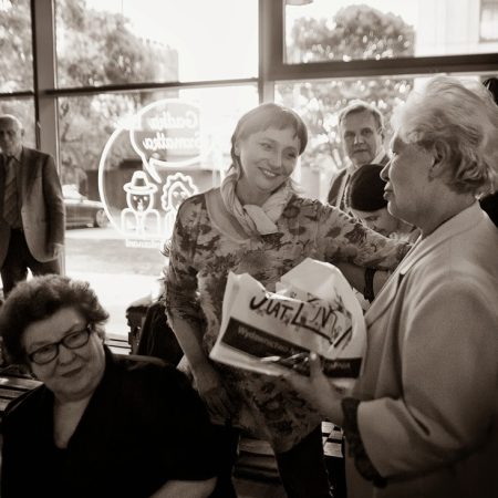 Dziękuję tym wszystkim, którzy przyczynili się do tego święta. Dziękuję tym, którzy zechcieli je ze mną uczcić. Spotkanie odbyło się w klubokawiarni Gadka-Szmatka i wzięło w nim udział ponad 90 osób. Było gwarnie, wesoło i serdecznie.